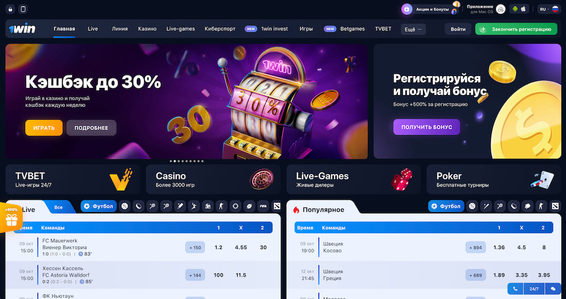 На официальном зеркале онлайн-сервиса посетители смогут делать ставки на спортивные Live-матчи, играть в покер прямо сейчас в казино и прочие игры, представленные в БК 1 ВИН.